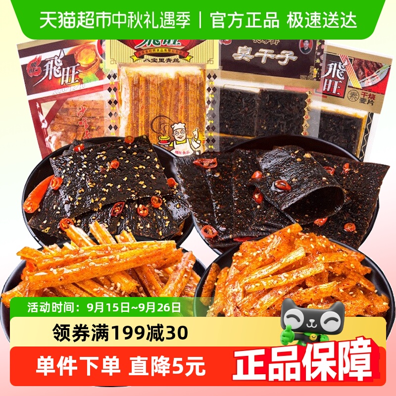 飞旺湖南辣条大礼包干烧麦片臭干子辣片80后儿时麻辣小时候的零食