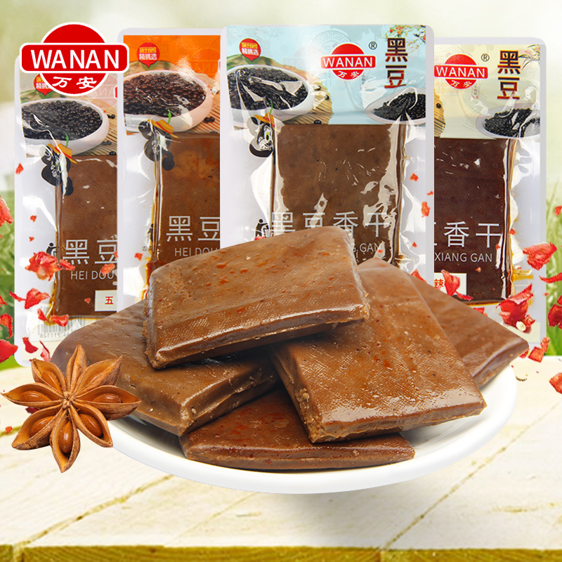 万安黑豆香干五香香辣多种口味豆制品豆干办公室休闲零食开袋即食