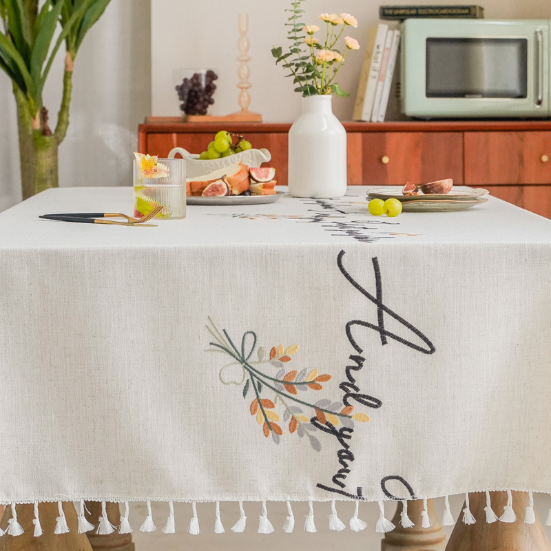 简约文艺绣花格子桌布棉麻亚麻布艺小清新茶几长方形餐方形桌垫