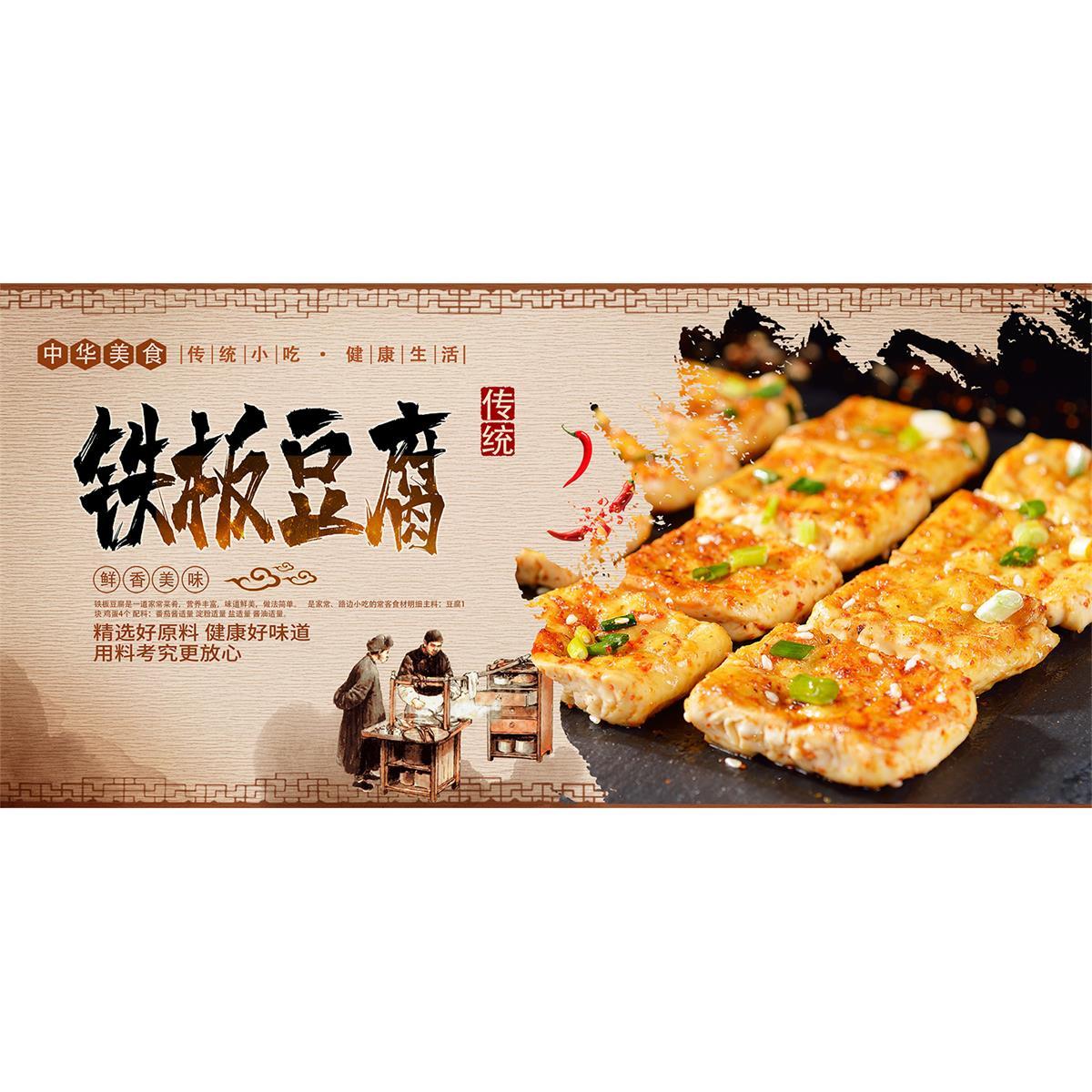 铁板香煎豆腐铁板豆腐海报贴纸小吃车夜市摆摊广告招牌布小吃店贴