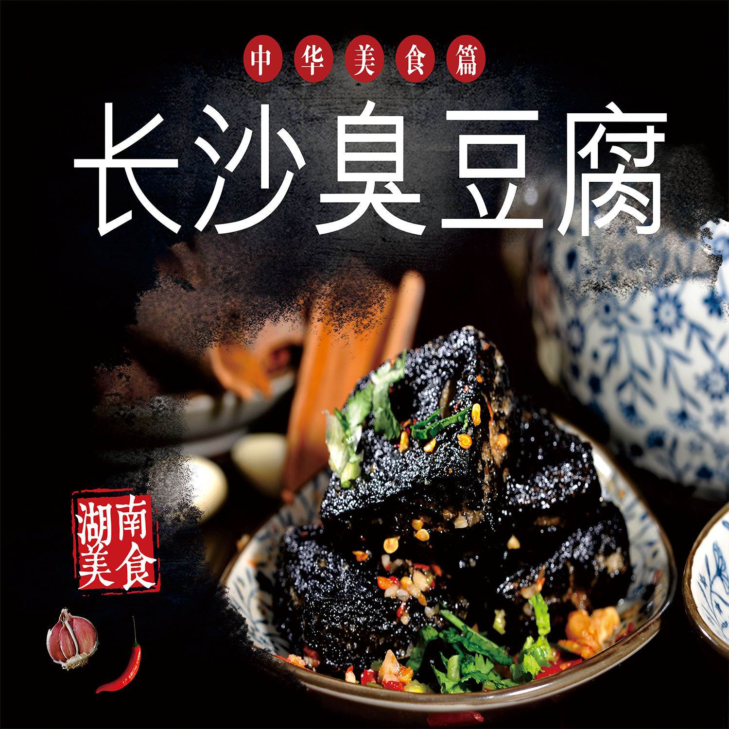 湖南长沙黑白臭豆腐舌尖小吃美食摆摊广告海报图贴车贴宣传装饰画