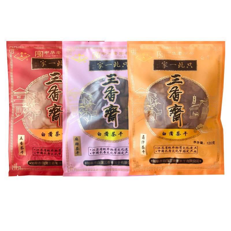 如皋特产三香斋白蒲茶干大包装长寿食品豆腐干旅游户外干粮3袋/份