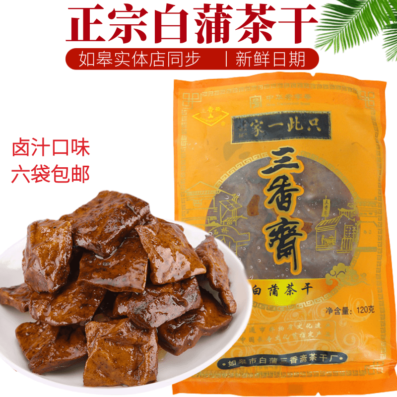 如皋白蒲特产三香斋白蒲茶干卤汁五香豆腐干旅游干粮休闲零食包邮