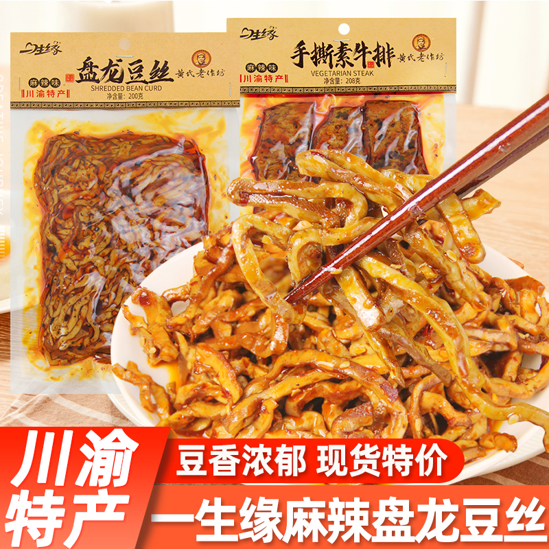 一生缘盘龙豆丝手磨豆干火锅素毛肚手撕素牛排川渝特产零食小吃