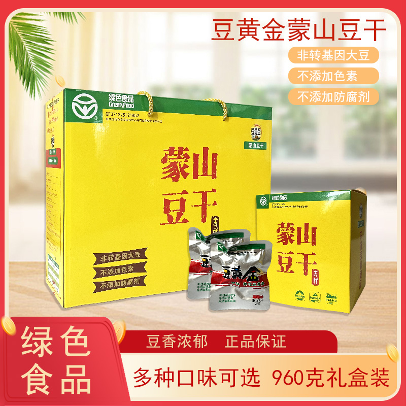 山东临沂费县 豆黄金蒙山豆干即食零食960克 黄色礼盒