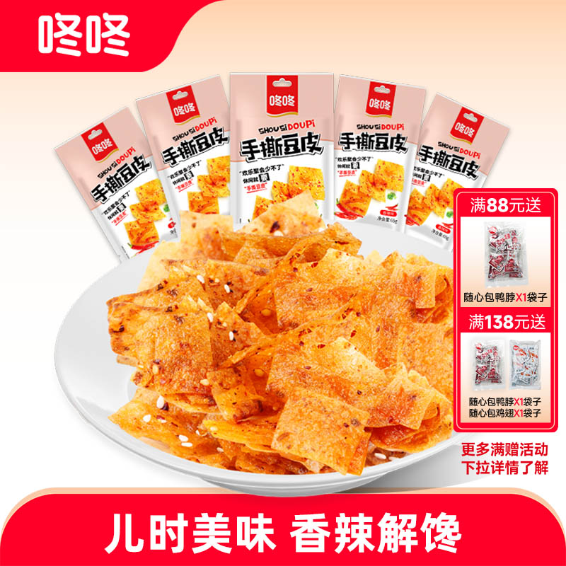 三只松鼠豆皮香辣味210g手撕辣条豆腐干麻辣片小吃休闲食品