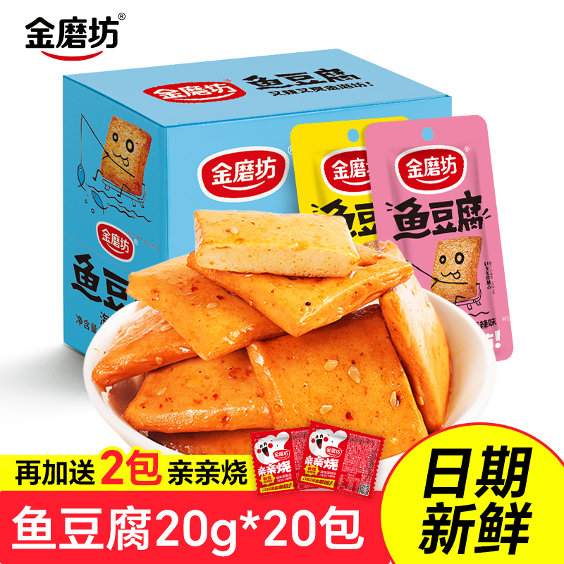 金磨坊鱼豆腐20克鱼板烧盒装20包豆腐干麻辣零食小吃湖南特产包邮