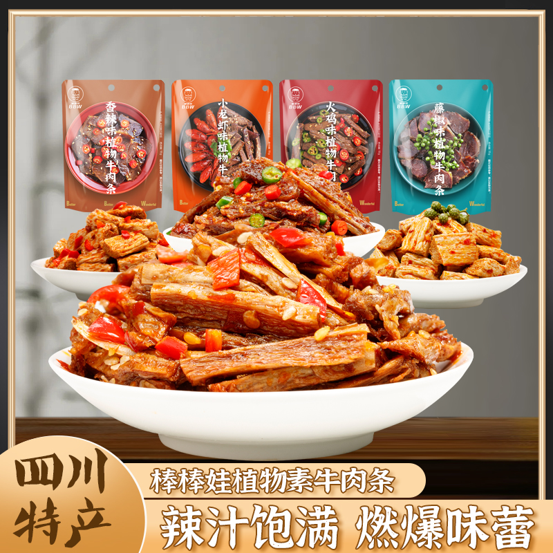 棒棒娃植物肉55g*4袋手撕素牛排素肉豆制品麻辣小零食豆干辣条
