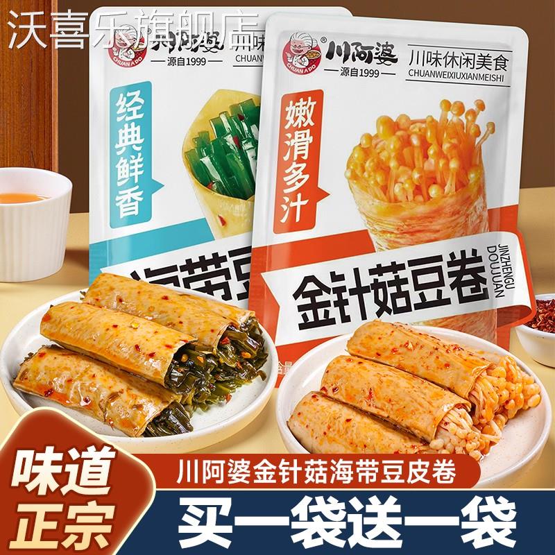 川阿婆金针菇豆卷香辣豆皮卷海带夹心豆卷休闲饱腹解馋小零食豆干
