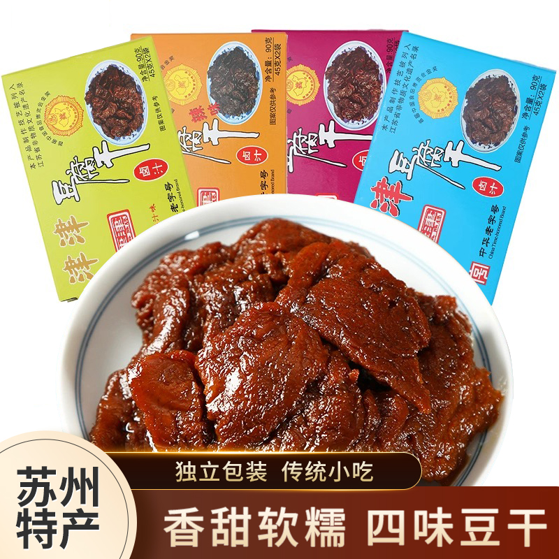 津津卤汁豆腐干苏州老字号特产小吃蜜汁豆制品零食4种口味90g盒装