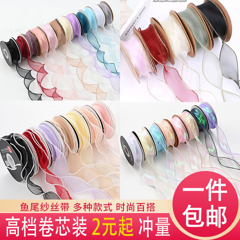 鱼尾纱丝带大卷鲜花手工摆摊diy蝴蝶结纱带花束缎带花艺波浪纱带