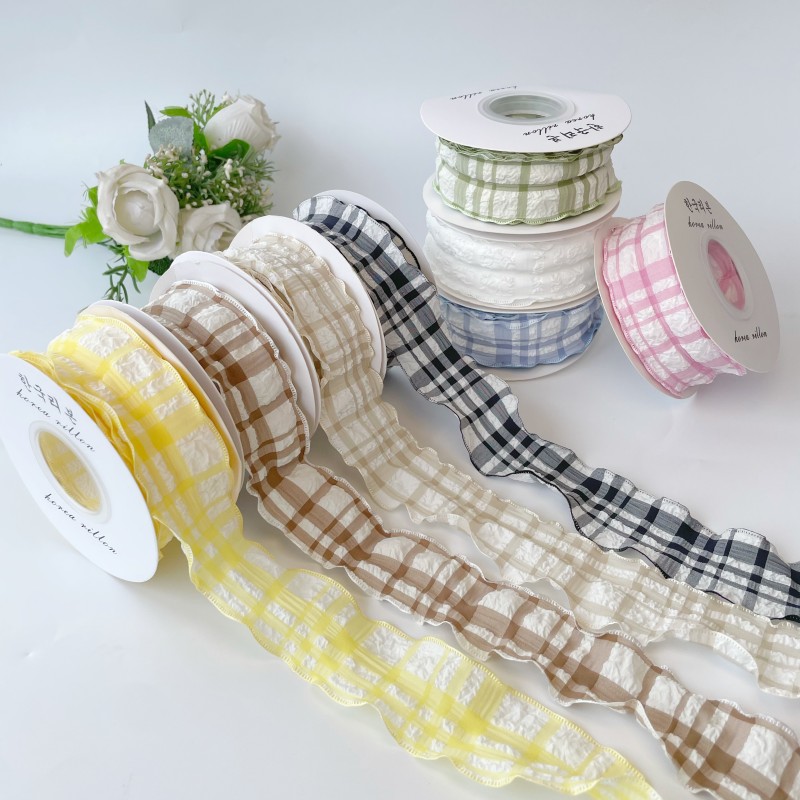 单边波浪花边格子织带DIY头饰发箍蝴蝶结芽边丝带花束礼盒包装带