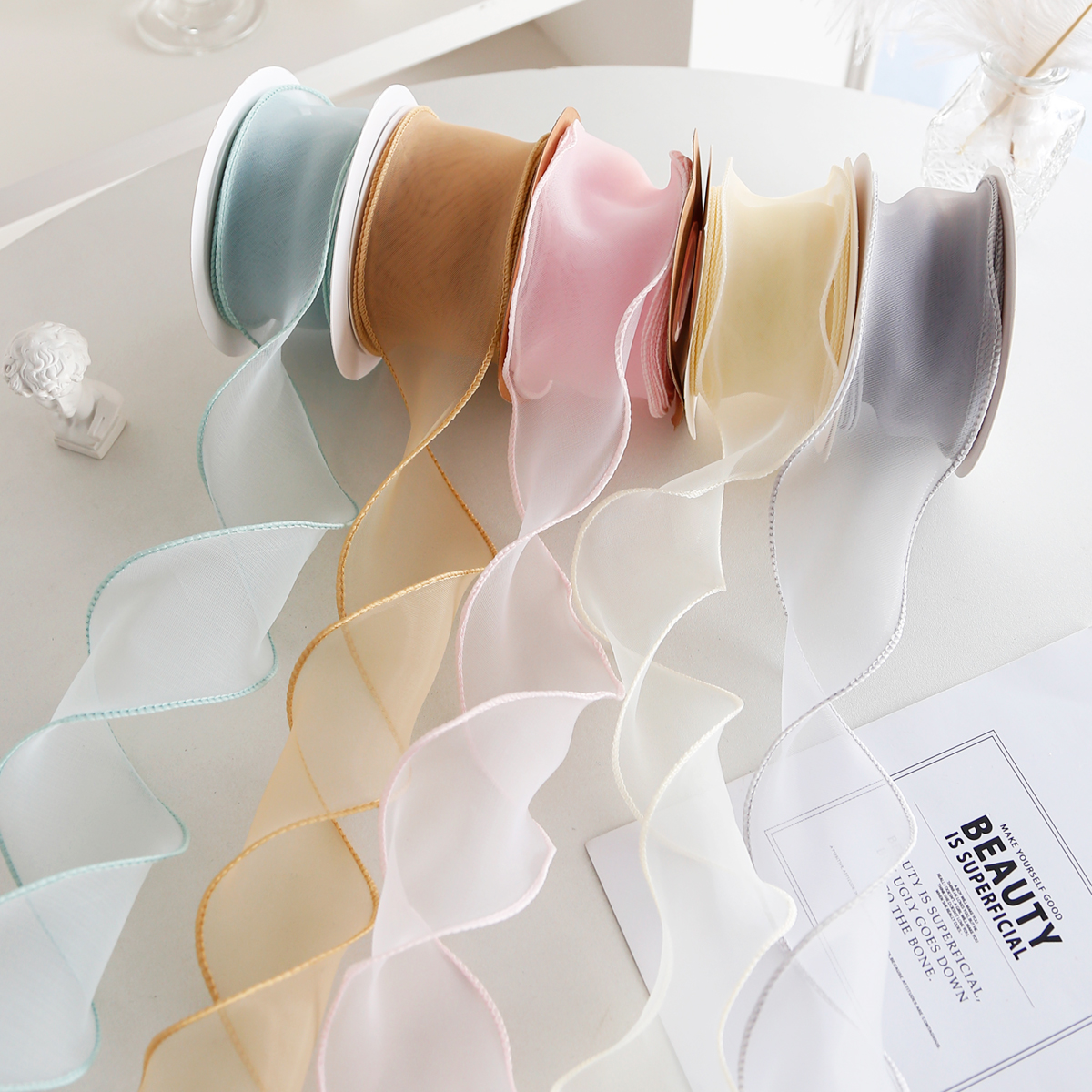 金边美人鱼尾纱丝带雪纱花束包装蝴蝶结手工材料波浪彩带鲜花花艺