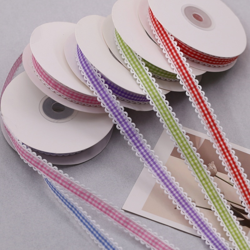 双芽边波浪花边格子布带DIY发饰蝴蝶结服饰装饰丝带服装装饰辅料