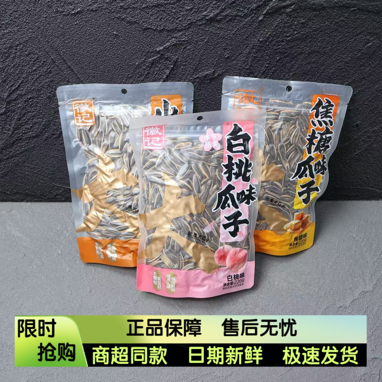 徽记白桃味瓜子220g焦糖山核桃味煮葵花籽五香味打手瓜子炒货零食