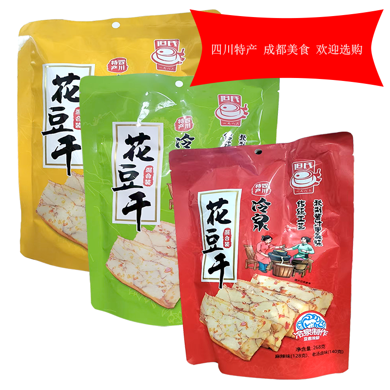 但氏冷泉花豆干268g/袋四川特产什邡红白豆腐干八宝五香麻辣豆干