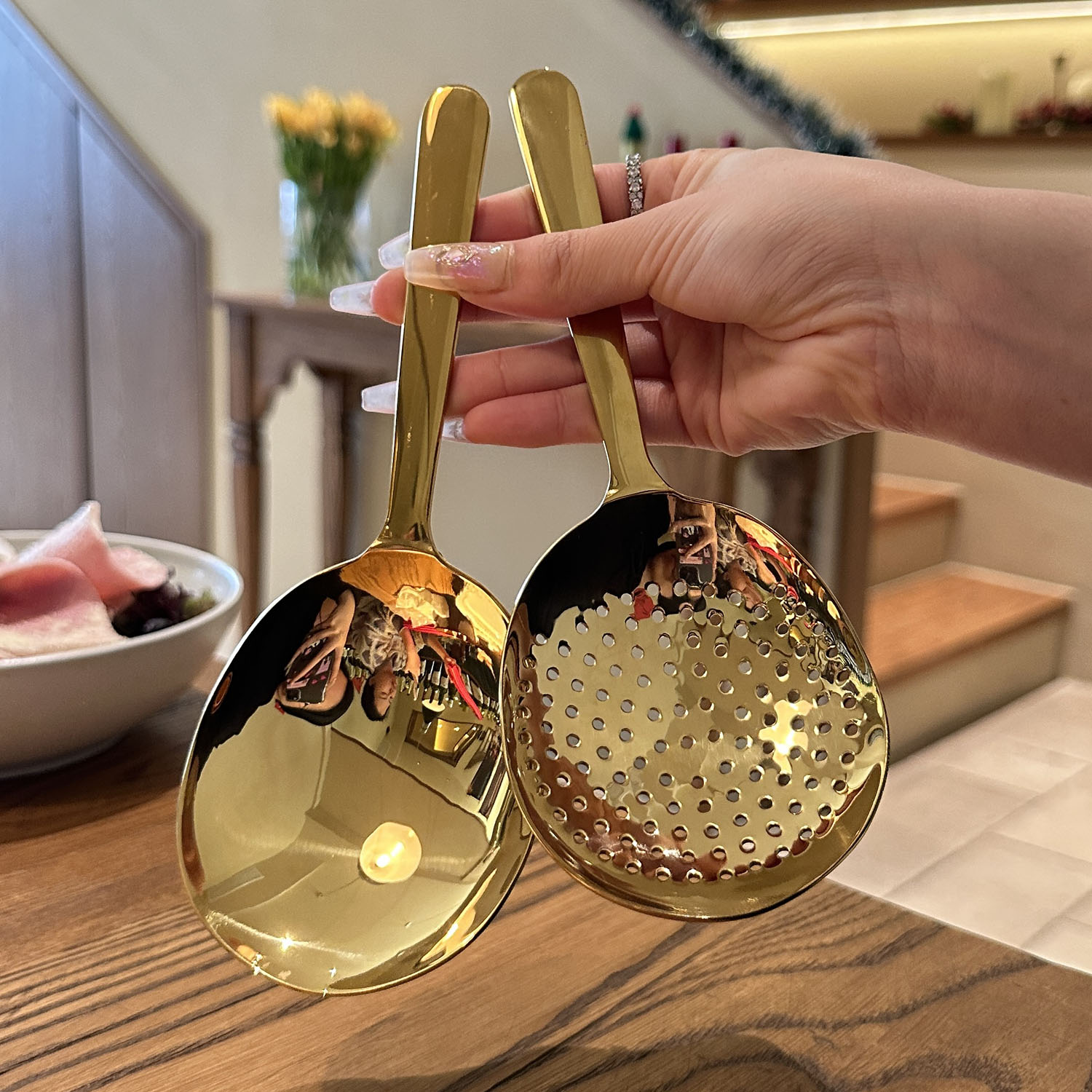 【捞绿豆皮用】18/10不锈钢短柄汤勺面粉勺分餐勺漏勺捞勺分汤勺
