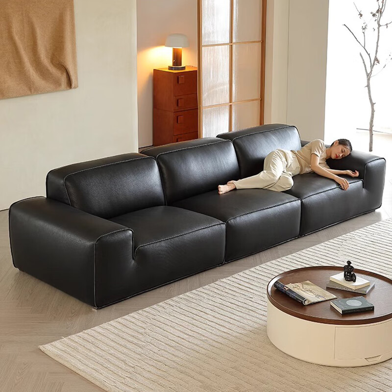 瑞雪大黑牛真皮沙发客厅头层牛皮黑色意式极简豆腐块直排2025款