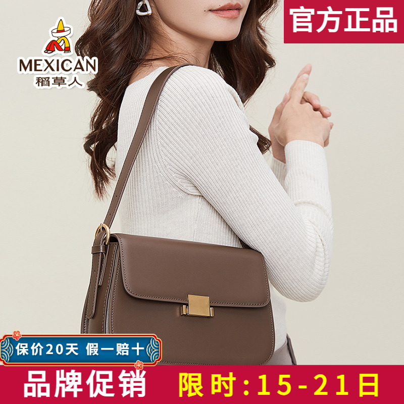 稻草人包包女新款夏季牛皮单肩包斜挎包真皮腋下马鞍包豆腐包女包