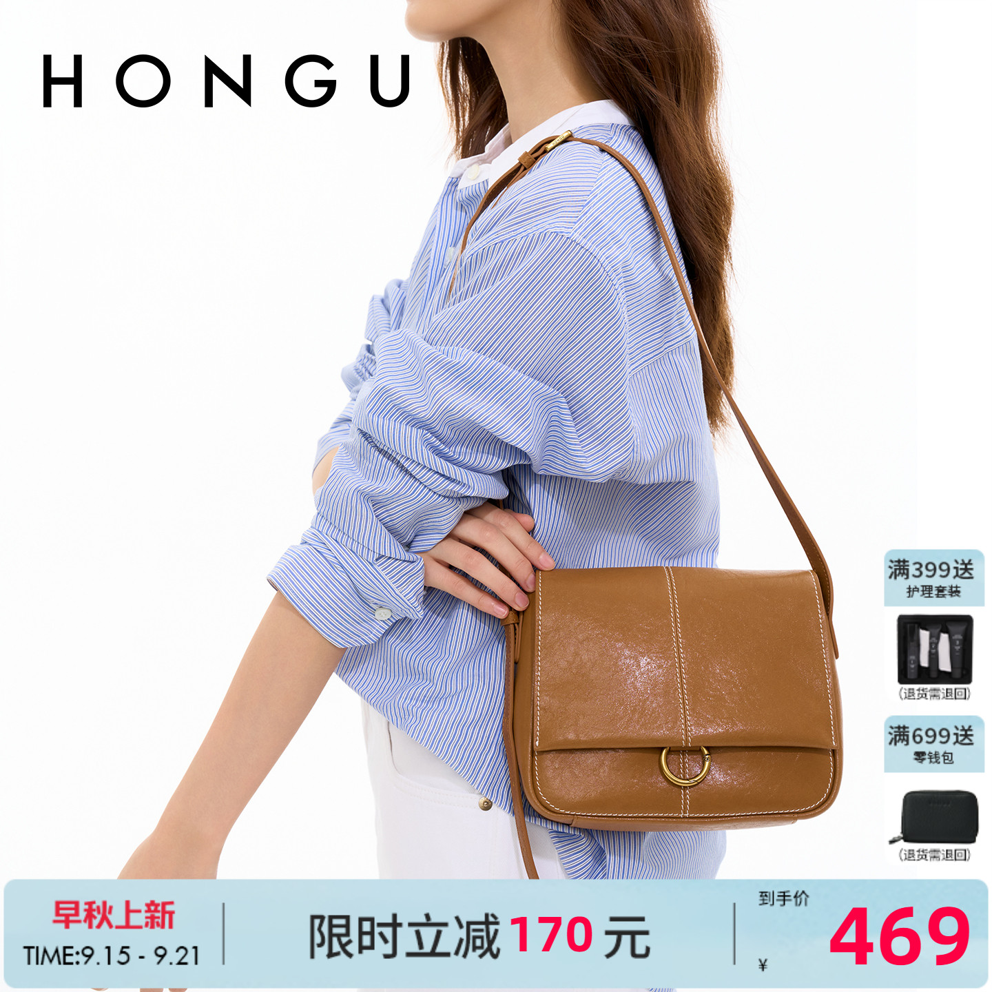 红谷包包女2025新款植鞣牛皮单肩腋下包真皮复古斜挎豆腐包女士包