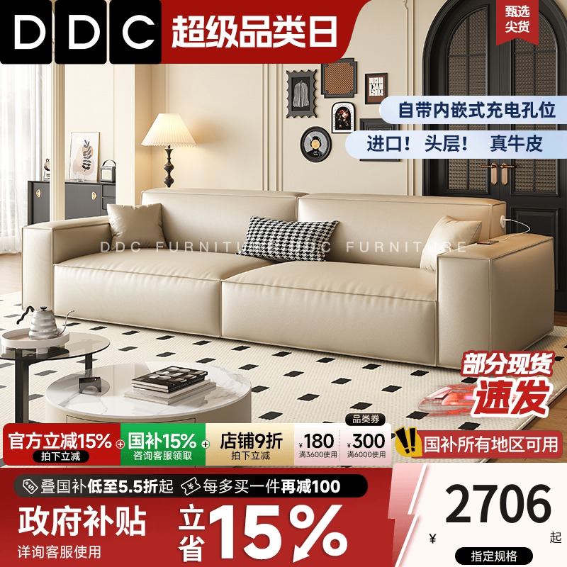 DDC意式极简豆腐块真皮沙发新款小户型客厅直排头层牛皮沙发佛山