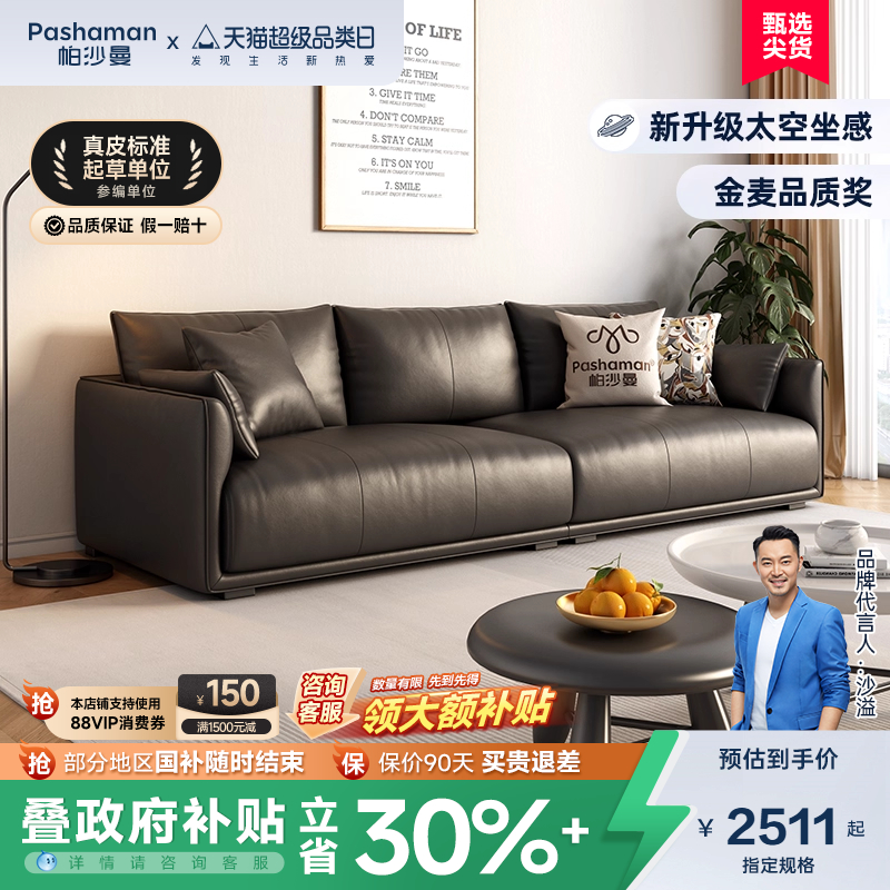 帕沙曼 豆腐块真皮沙发头层牛皮客厅意式极简2025新款大平层高级
