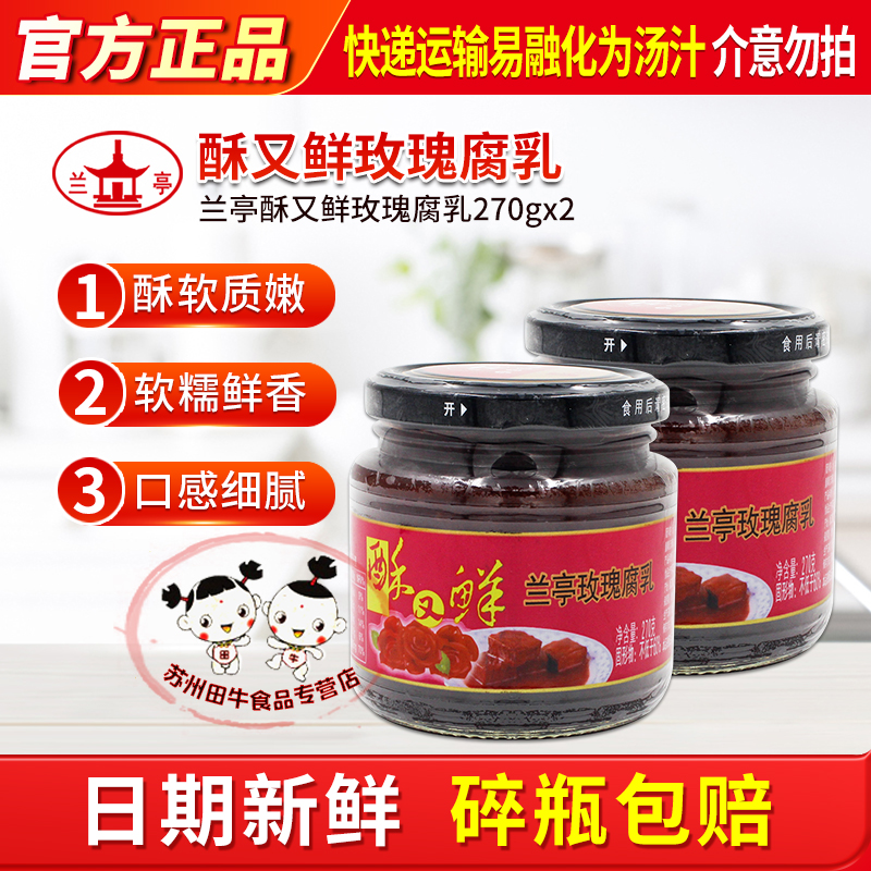 兰亭酥又鲜玫瑰腐乳270g*2瓶霉豆腐微甜香酥红方红腐乳汁早餐拌饭