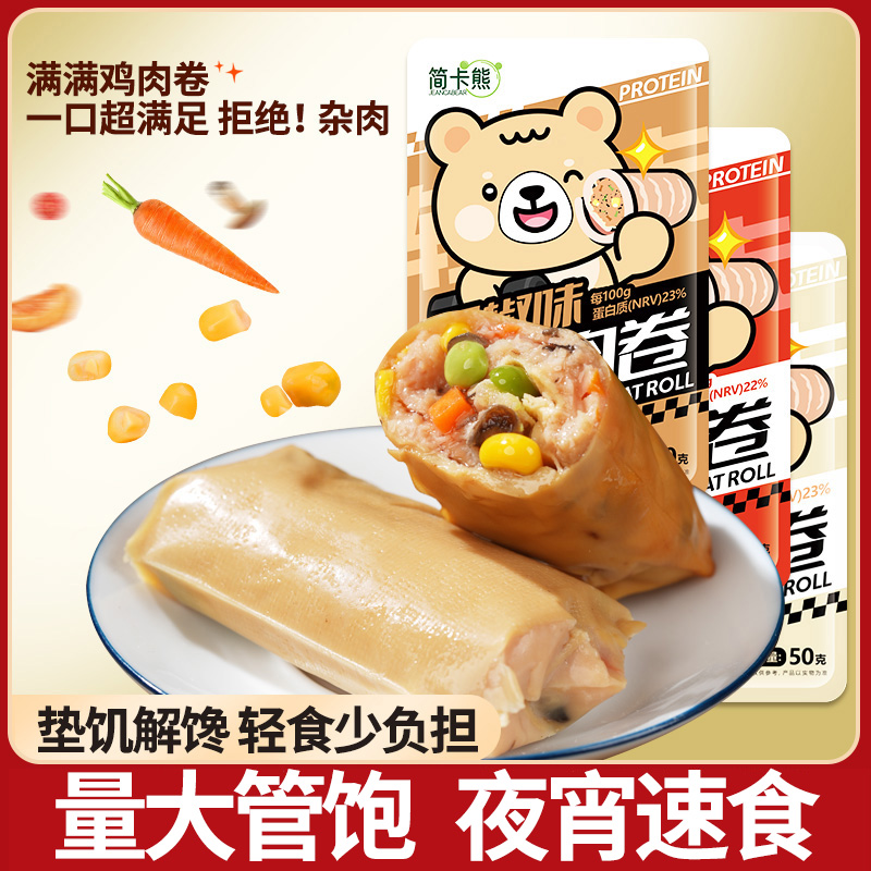简卡熊即食豆皮鸡肉卷健身代餐主食减轻早餐零食品肥解馋鸡胸肉脂