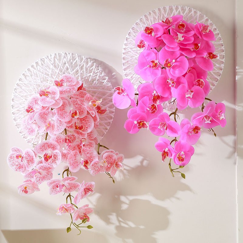 北欧仿真花壁挂装饰电视背景墙面蝴蝶兰假花原创绿植遮丑改造挂件