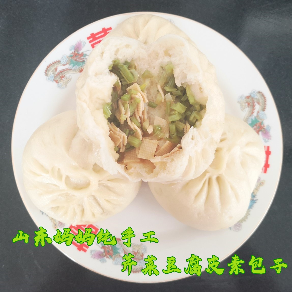 山东妈妈纯手工小包子芹菜豆腐皮素包子10个真空包装