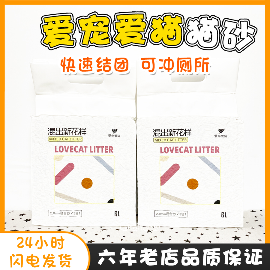 爱宠爱猫混出新花样混合猫砂膨润土+豆腐猫砂可冲水6L原味结团快