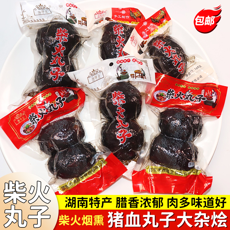 湖南新宁县猪血丸子特产农家自制烟熏原味袋装柴火