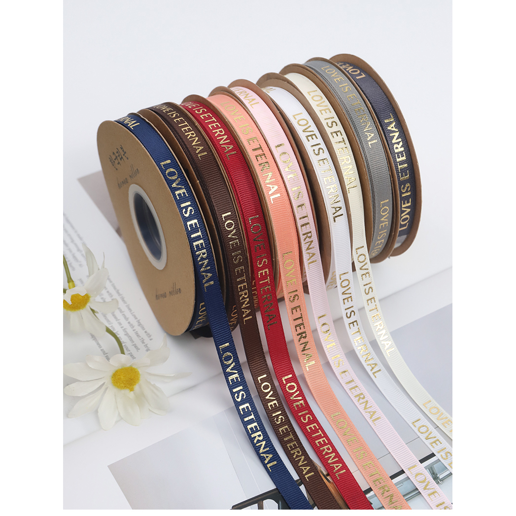 1cm英文love烫金螺纹丝带蛋糕装饰蝴蝶结飘带鲜花包装彩带打包带