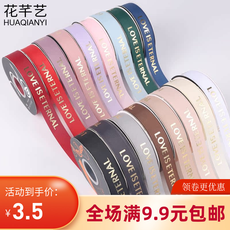花喜爱高品质英文丝带烫金涤纶棉带包花织带花束蝴蝶结礼品包装带