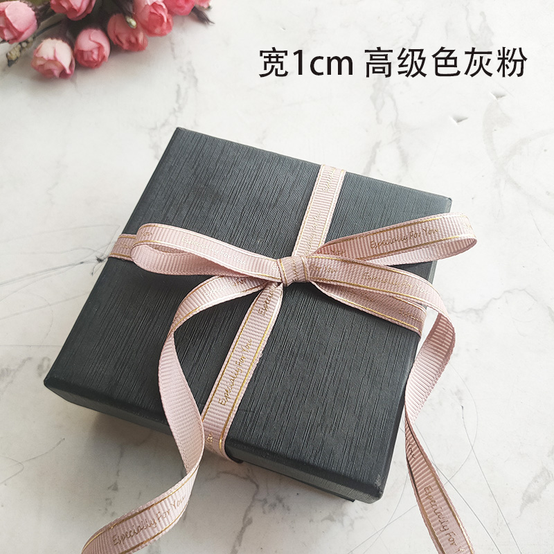 1cm高级粉烫金字母缎带手工DIY礼盒鲜花丝带喜糖盒装饰蝴蝶结材料