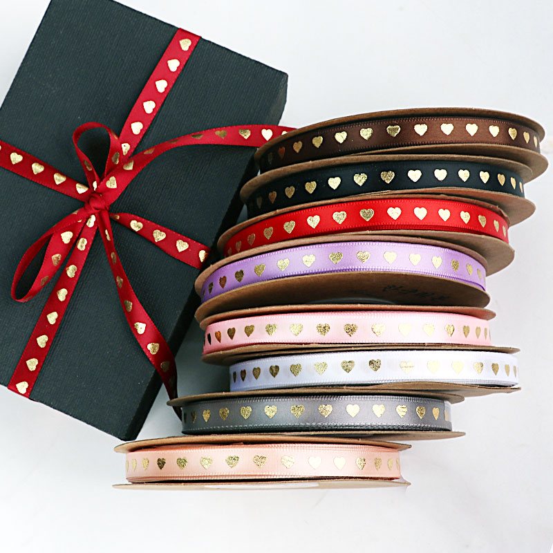 1.6cm烫金爱心丝带缎带绸带彩带diy手工蝴蝶结礼物烘焙花包装织带