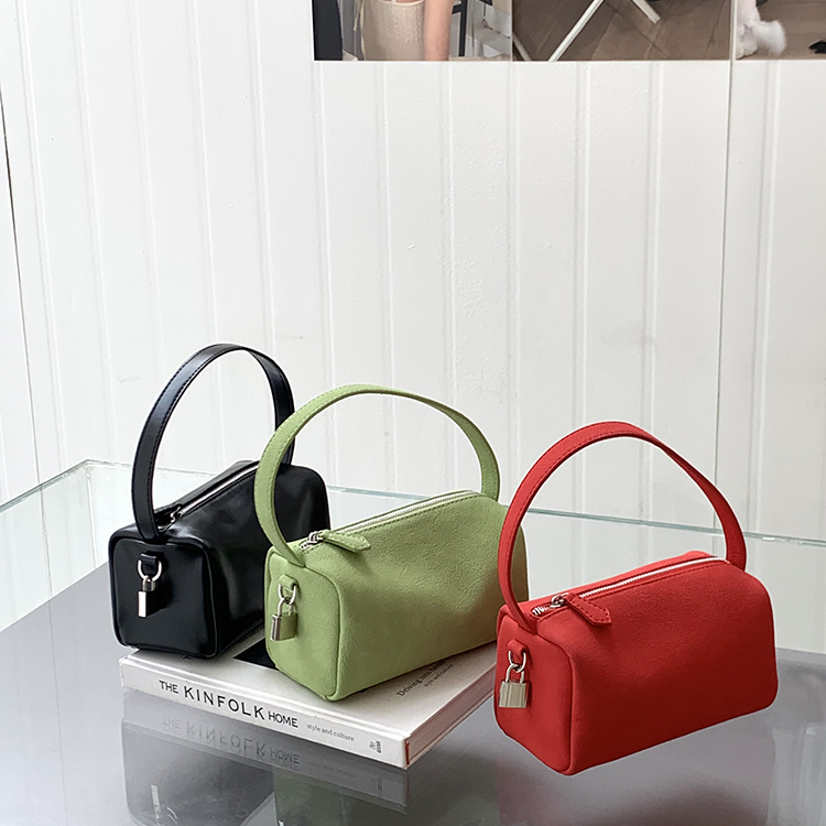 肉肉陈WHITERM韩版秋冬复古绒面波士顿手提豆腐包通勤单肩斜跨包