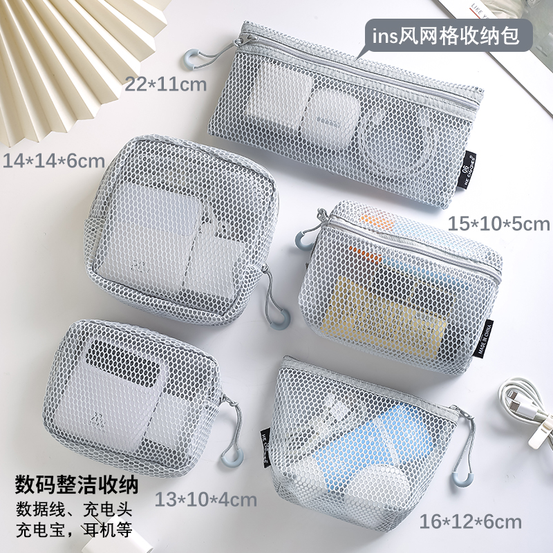 多巴胺手提网纱化妆包豆腐包便携式旅行洗漱包大容量多功能收纳包