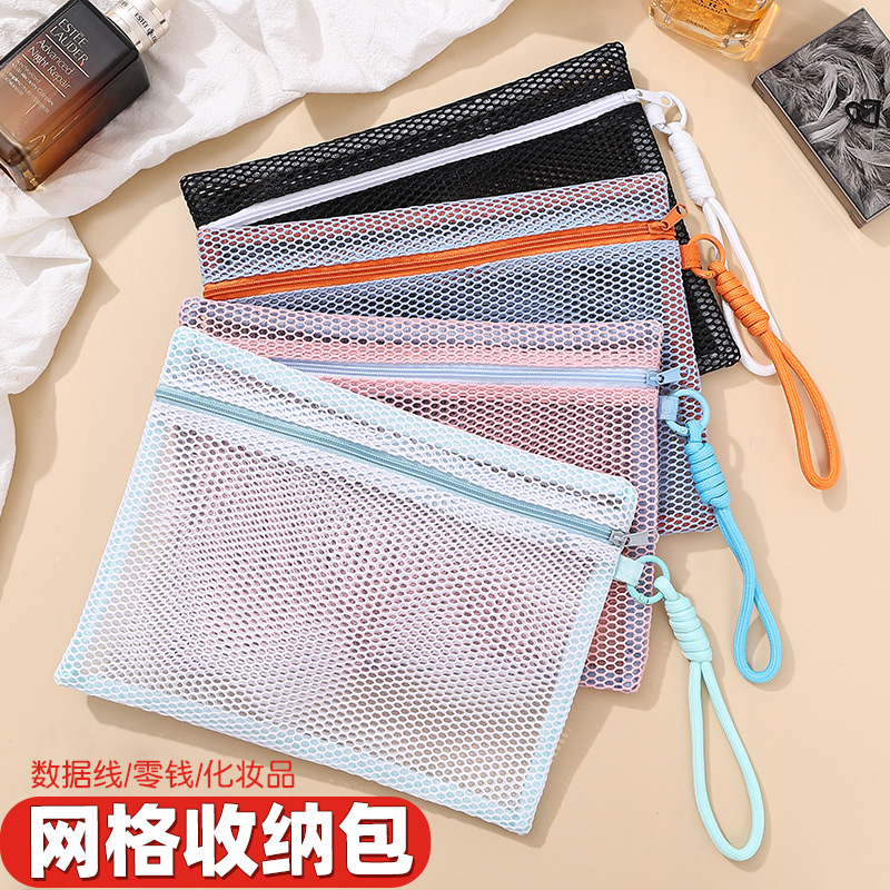 彩虹豆腐包网格收纳包随身杂物小包透明网眼零钱包化妆包拉链袋手提袋多功能银行卡钥匙袋男女随身旅行挂包袋