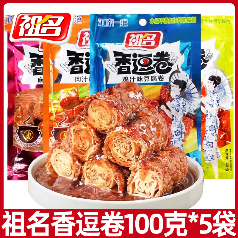 祖名香逗卷肉汁味麻辣味五香味100g独立袋装即食豆卷网红解馋零食