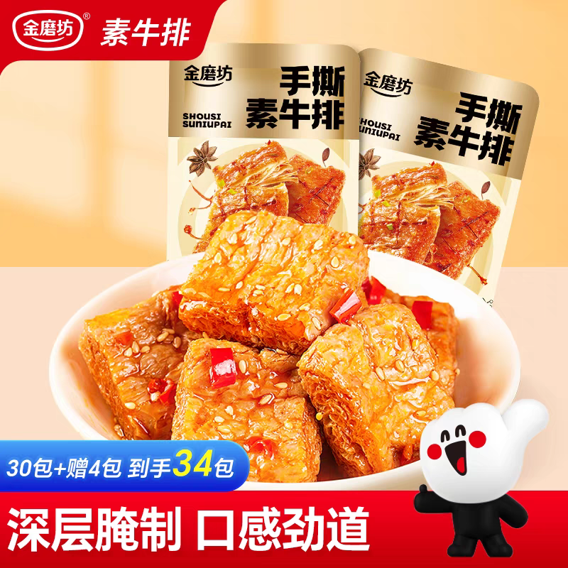 金磨坊手撕素肉素牛排鱼豆腐素牛肉豆干辣条网红零食小吃休闲食品