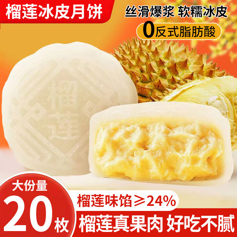 榴莲冰皮月饼散装果肉爆浆夹心中秋送礼糕点新式榴莲味网红月饼