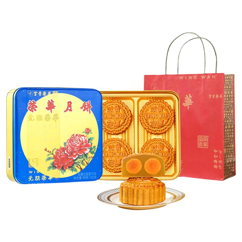 元朗荣华双黄白莲蓉月饼广式中秋送礼礼盒装740g