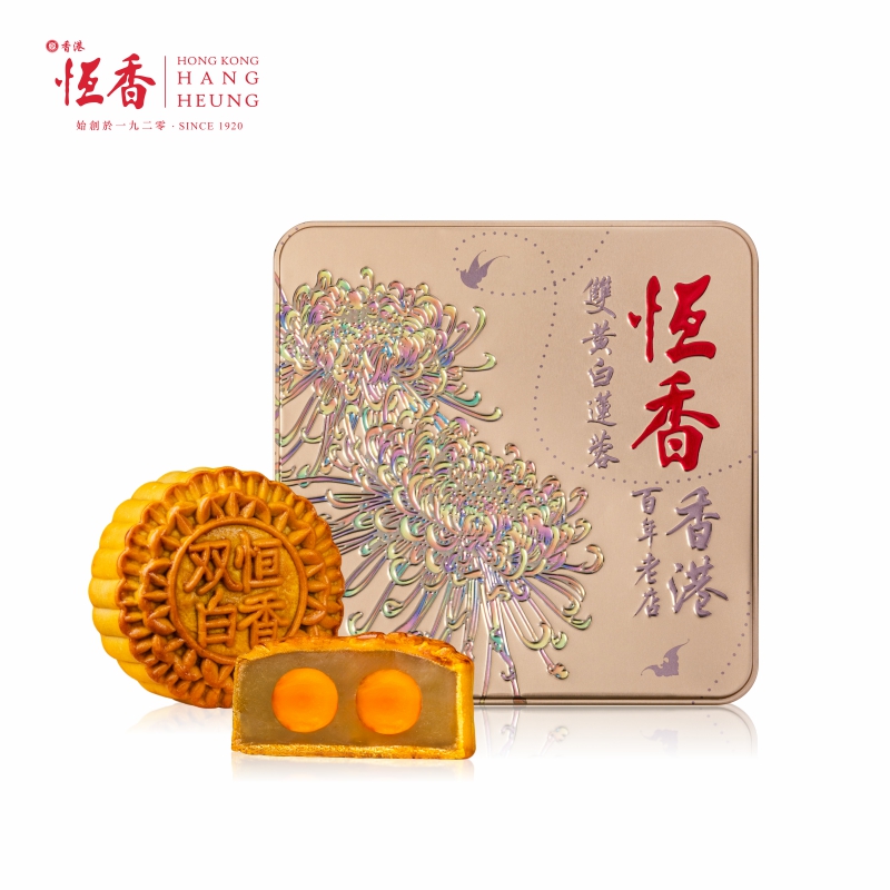 2025香港代购元朗荣华白莲蓉蛋黄三黄纯莲蓉月饼四个礼盒点心中秋