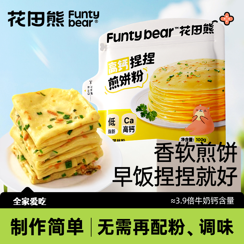 花田熊高钙煎饼粉儿童早餐专用捏捏袋松饼粉预拌粉家用鸡蛋饼面粉