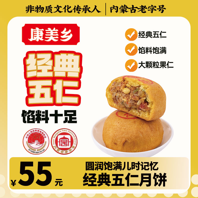 恩宝丰镇五仁月饼内蒙古纯老式手工旗舰店胡麻油中秋混糖伍仁月饼