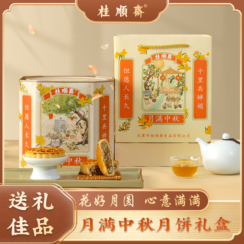 天津桂顺斋月饼礼盒中秋节京式传统清真老五仁百果月饼特产糕点