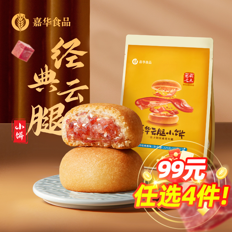 【99元任选4件】嘉华云腿小饼火腿月饼各地美食特产小吃火腿糕点