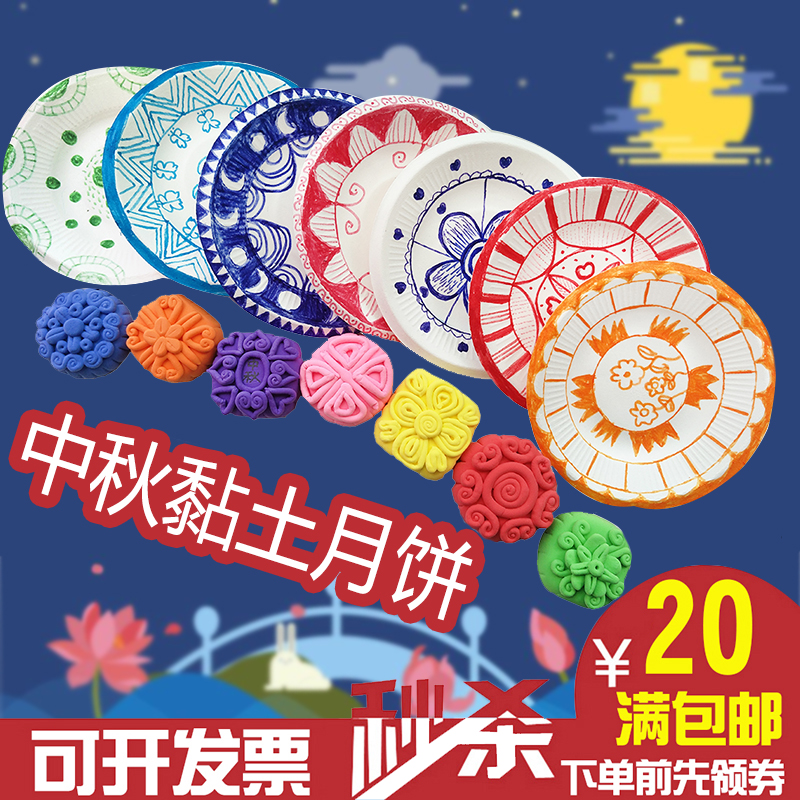 中秋节手工diy超轻粘土月饼儿童创意制作黏土作品幼儿园材料包