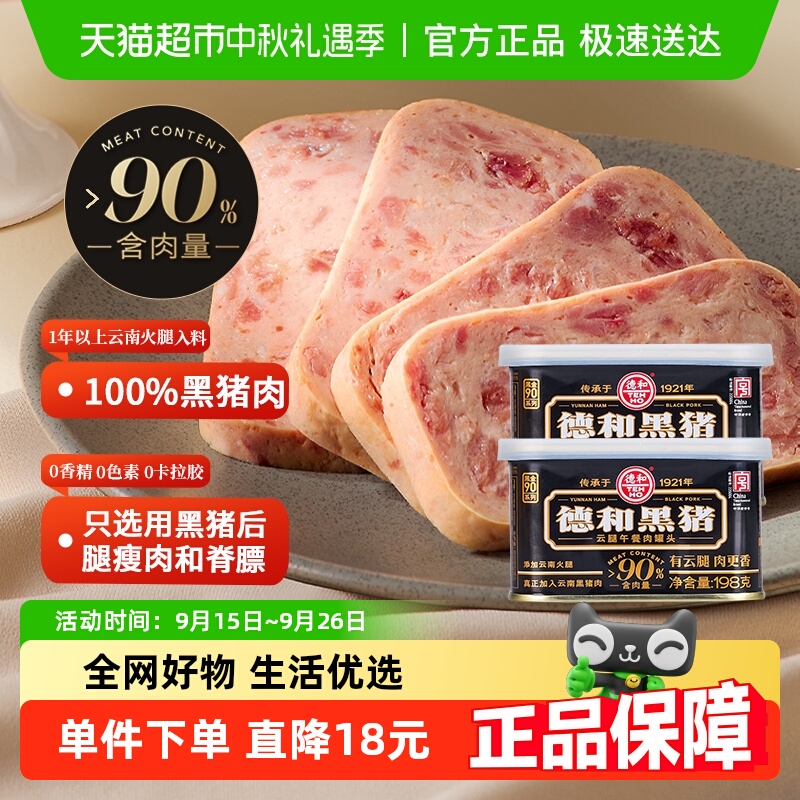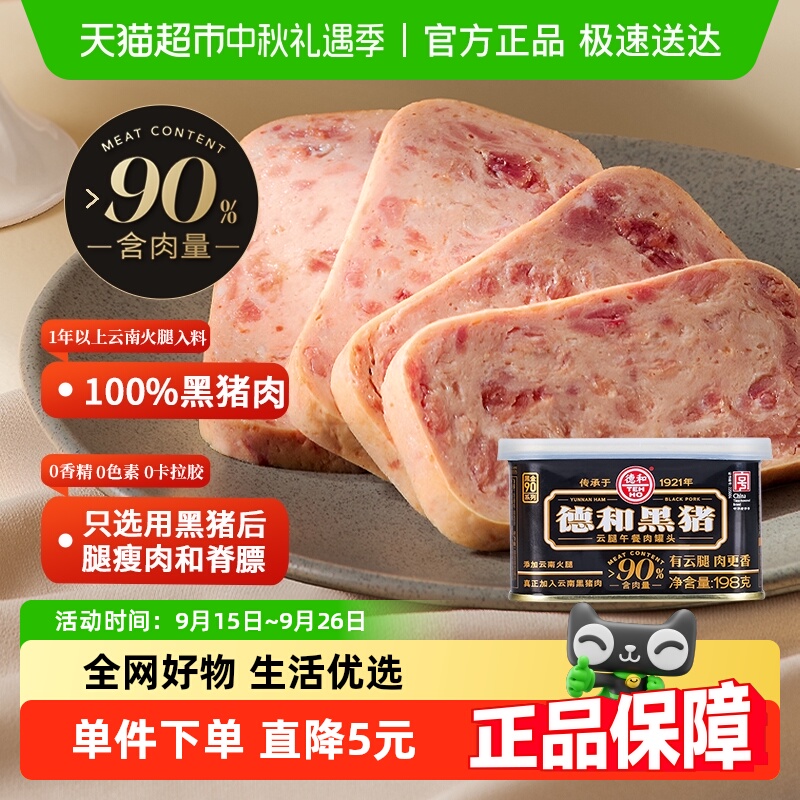 德和黑猪云腿午餐肉罐头云南特产方便速食早餐夹三明治官方旗舰店